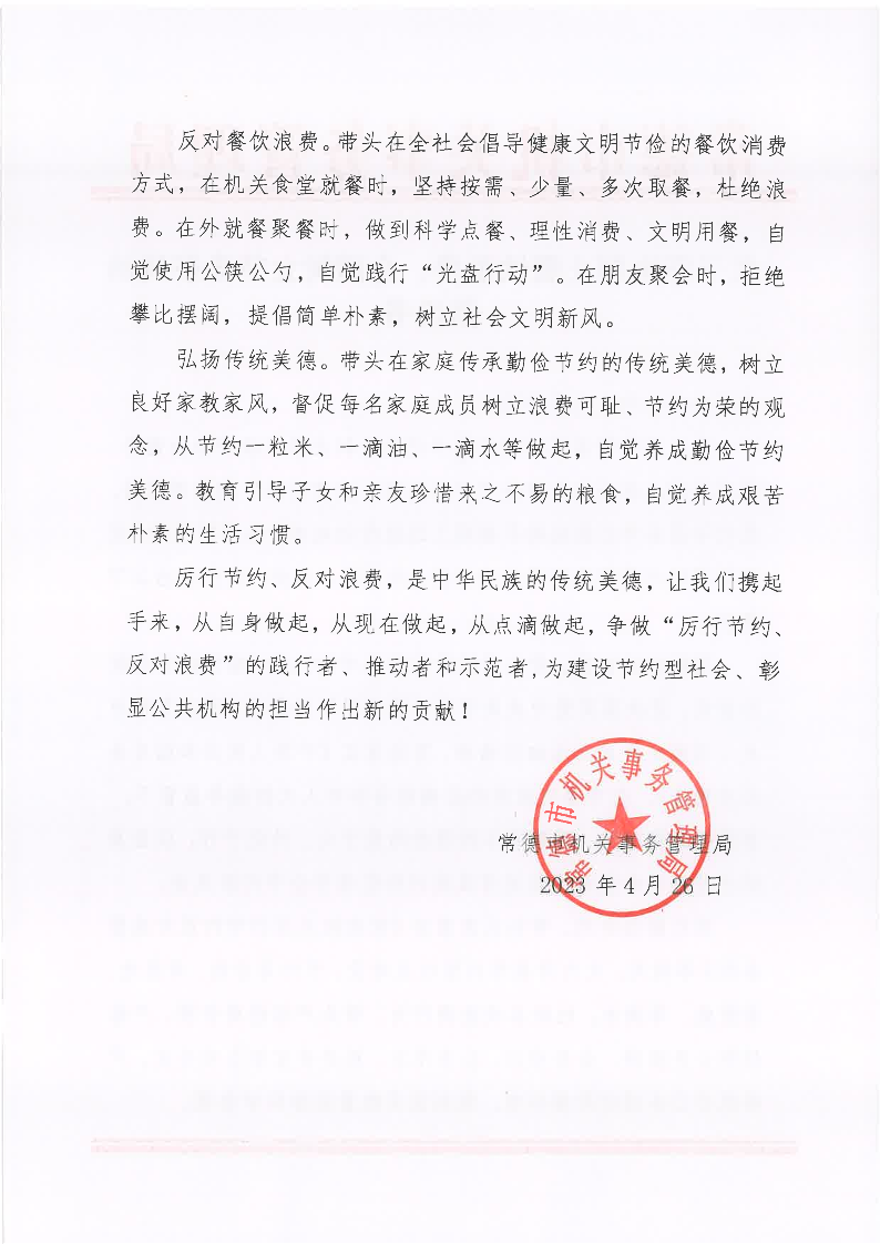 关于坚决制止餐饮浪费、全面树立节俭新风的倡议书